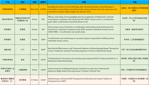 在头颈肿瘤、乳腺癌、肺癌、前列腺癌等多个疾病领域,卡瑞利珠单抗、阿得贝利单抗、吡咯替尼、氟唑帕利、法米替尼、醋酸阿比特龙片(II)等抗肿瘤新药相关研究一共入选了1项简短口头报告、4项壁报展示和1项电子壁报,彰显了AG百家乐医药强劲的研发实力。此外,AG百家乐医药自主研发的血小板生成素受体激动剂(TPO-RA)海曲泊帕在肿瘤治疗所致血小板减少领域、新一代长效G-CSF产品硫培非格司亭在肿瘤治疗所致中性粒细胞减少症领域各入选1项壁报展示。